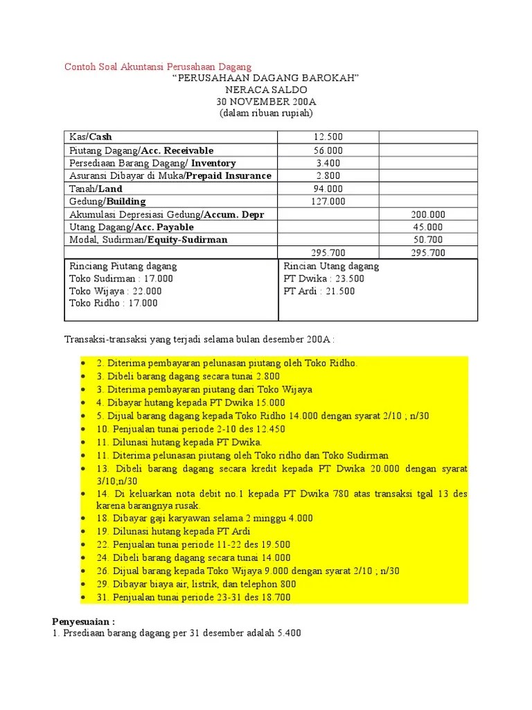 Contoh soal akuntansi perusahaan dagang beserta jawaban.